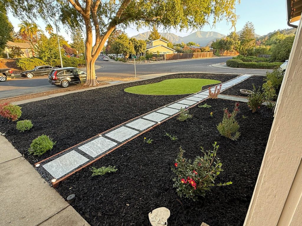 Details: Complete renovation like replacing soil or hardscape services • Plant flower beds • Apply mulch • Lay artificial turf • Plant trees or shrubs • Remove trees or shrubs • Install or repair sprinklers • Install or repair outdoor lighting • Artificial turf • Patio • Back yard • No, one-time project • Home