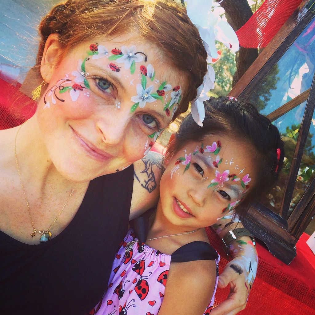 This really is my dream job. While I specialize in face painting, I also offer a range of body art services including natural organic henna body art, glitter tattoos, commissioned costume makeup, and body painting.
