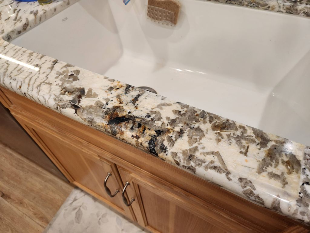 Details: Sealing or caulking • Repairing scratches or cracks • Granite • Severe - portions of the countertop missing, with jagged edges • Kitchen • Residential