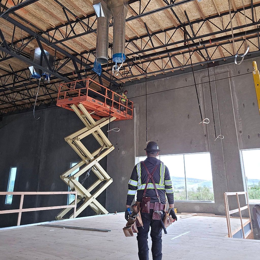 Metal stud framing, drywall and taping. We do clean quality work , no cut corners.