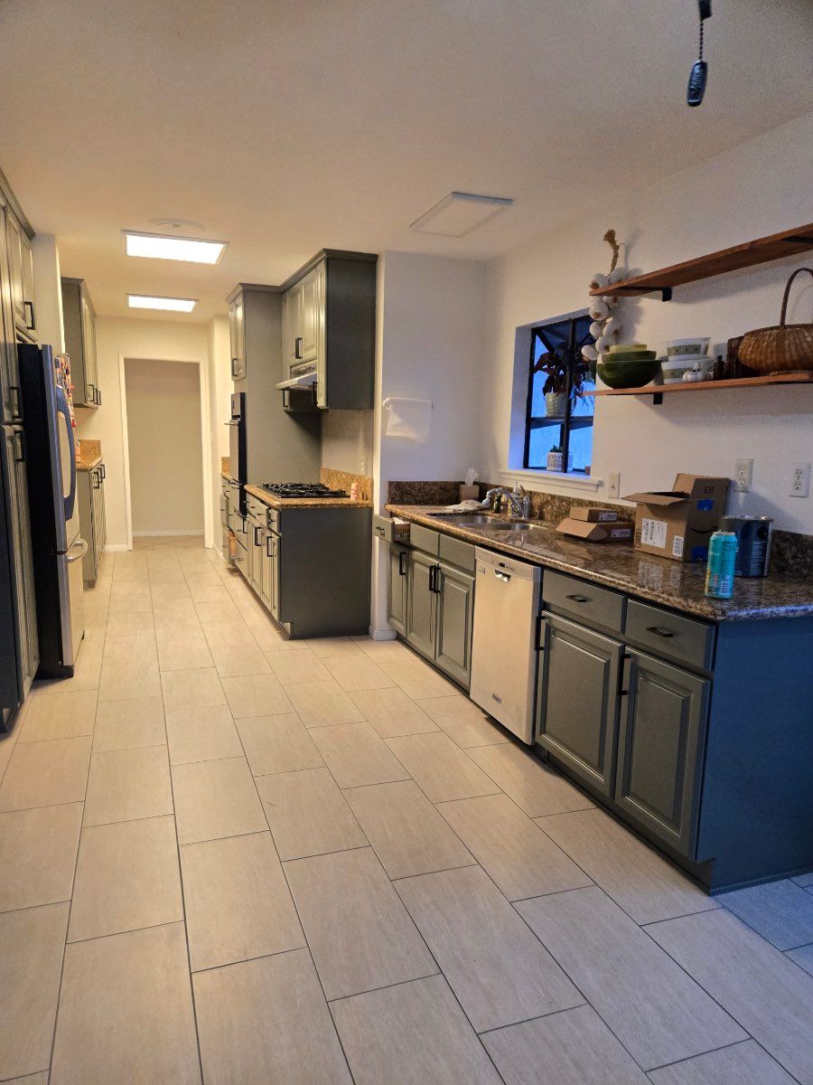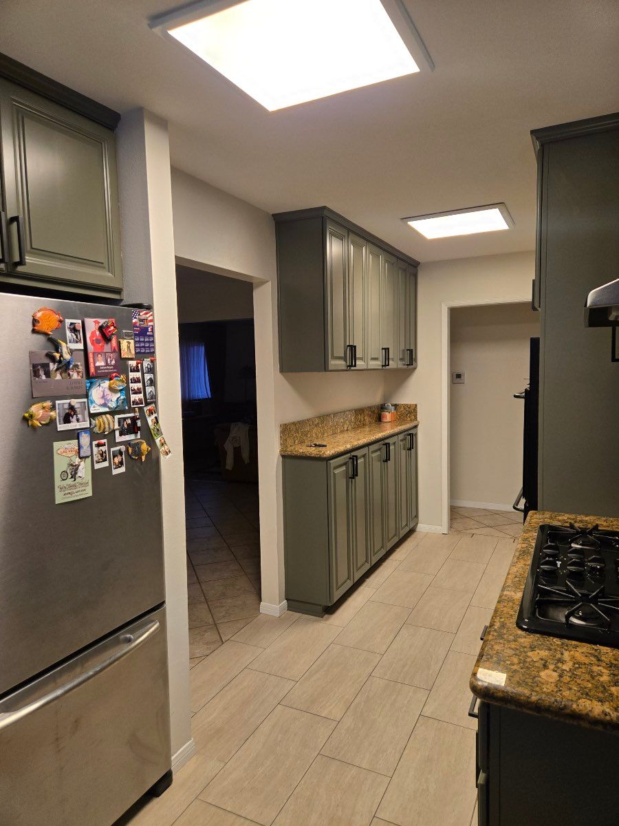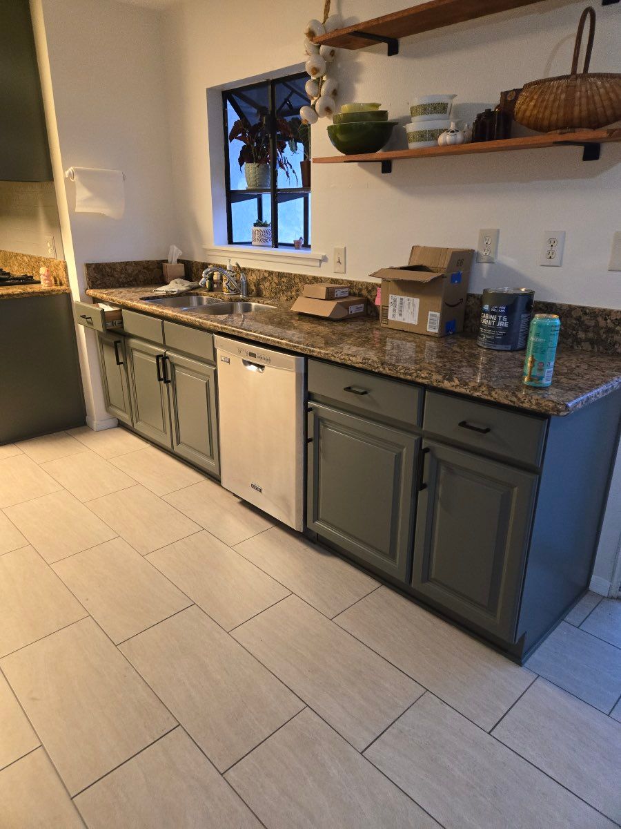 Details: Both, wall and base cabinets • 16 or more cabinets • Paint • Full repainting in same color • Yes, I will supply the paint to the professional