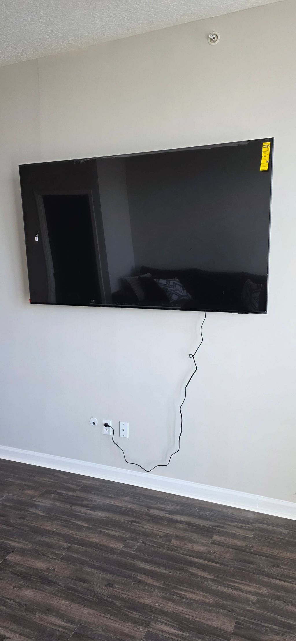 Details: Wall mount • Drywall • TV larger than 60 inches • Yes, there’s an electrical outlet nearby • No, I don’t need to conceal cables and wires • Yes, I already have a mount or stand • Flat against wall (fixed) • None