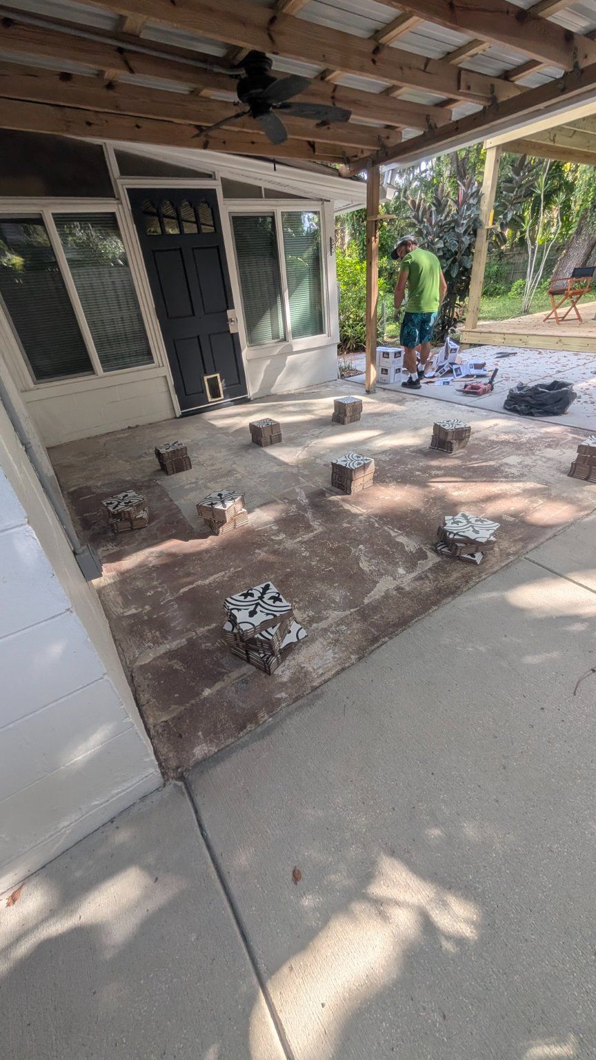 Details: Outside patio • Floor • 201 - 300 sq ft • Concrete • Ceramic • No, but I will buy the tiles myself