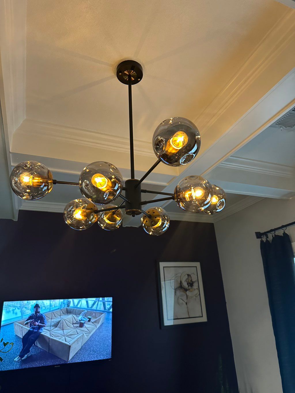 Details: Replacement of existing lighting • 1 light • 8 - 10 feet (standard ceiling) • Indoors • Existing property • House