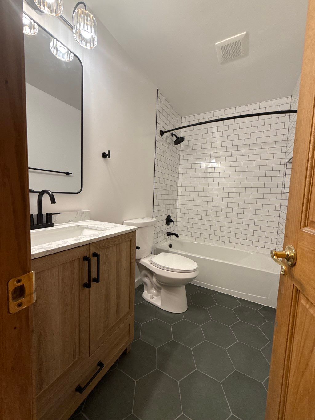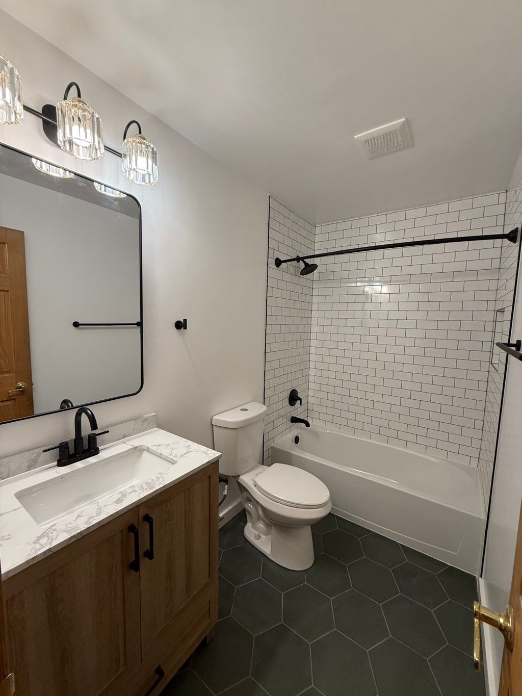 Details: Full remodel of bathroom • Fix water damage • Update style • Replace fixtures • Full bath • Home