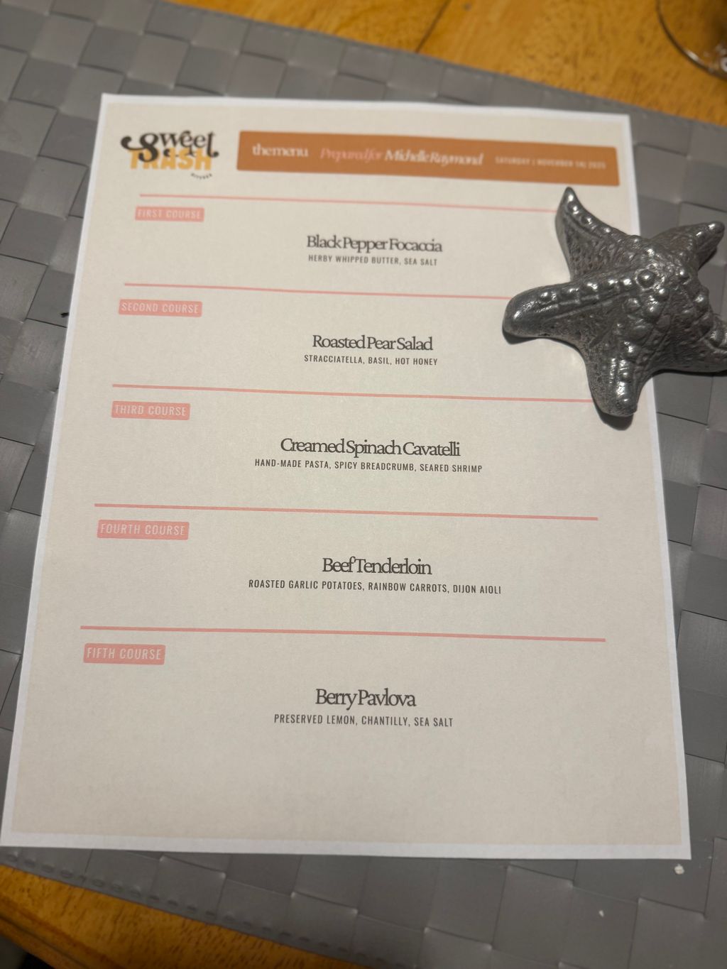 Details: Special occasion (birthday, anniversary, etc.) • 3 - 5 guests • Dinner • Premium (high end ingredients) • Dessert • American - casual • American - formal • Meal prepared onsite • Only once • My home, venue, etc.