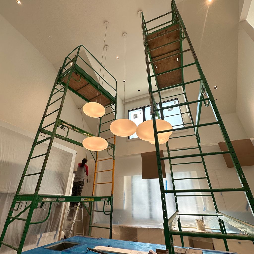 Details: Replacement of existing lighting • 1 light • Over 14 feet (lofty ceiling) • Indoors • Existing property • House