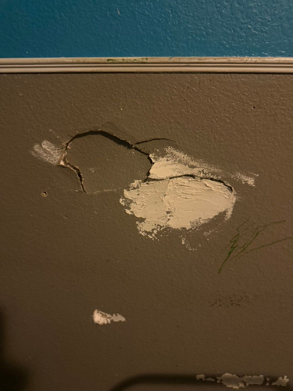 Details: Patch damaged drywall • 1 room • Wall(s) • Residential