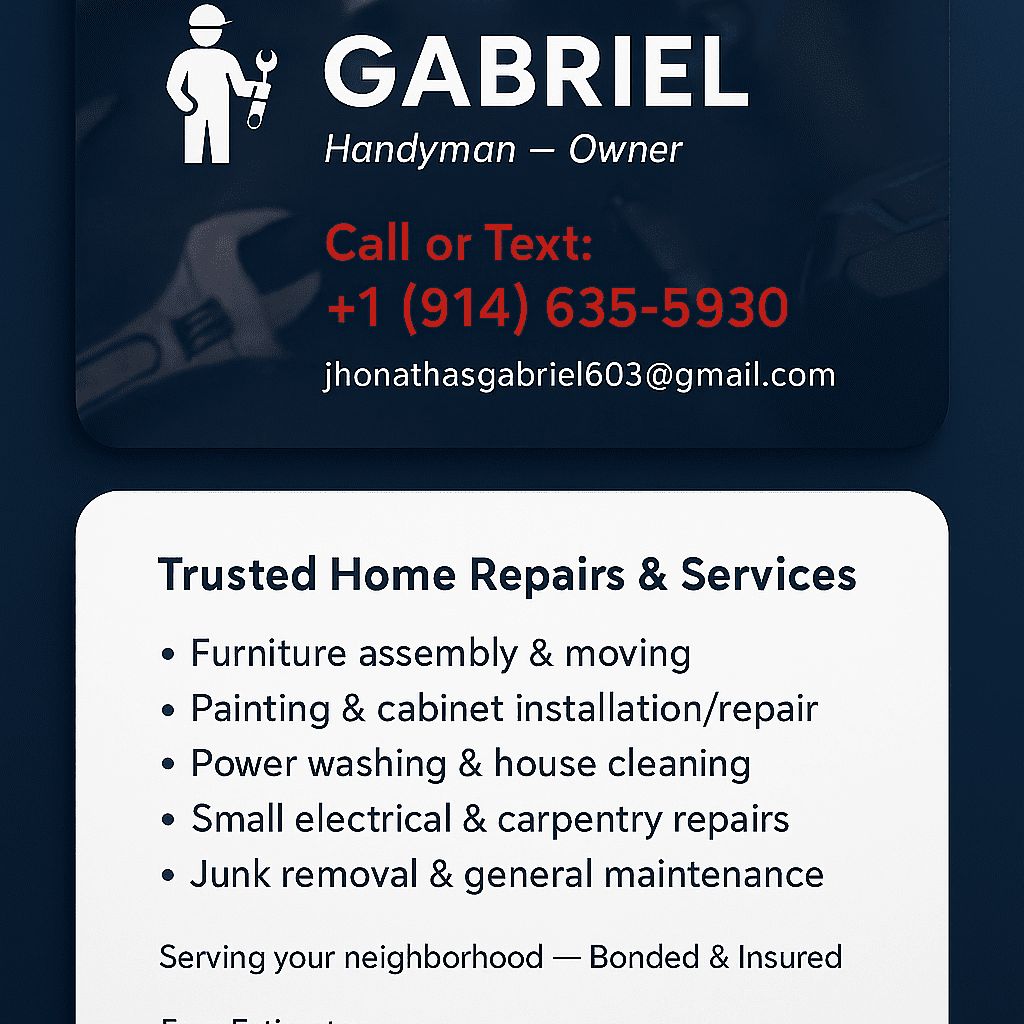 with a full range of services, which include, painting, carpentry, cleaning, furniture assembly, and removals l offer a practical and efficient solution for all the needs of your home or business l am a passion for transforming environments and carrying out your projects ensuring quality work end attention to detail