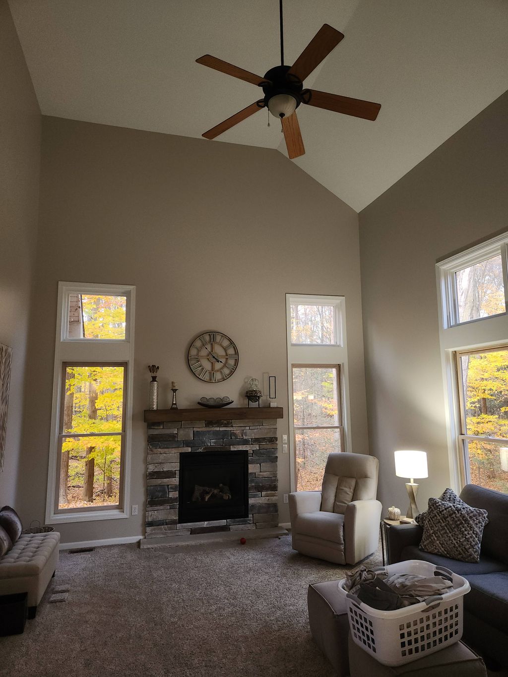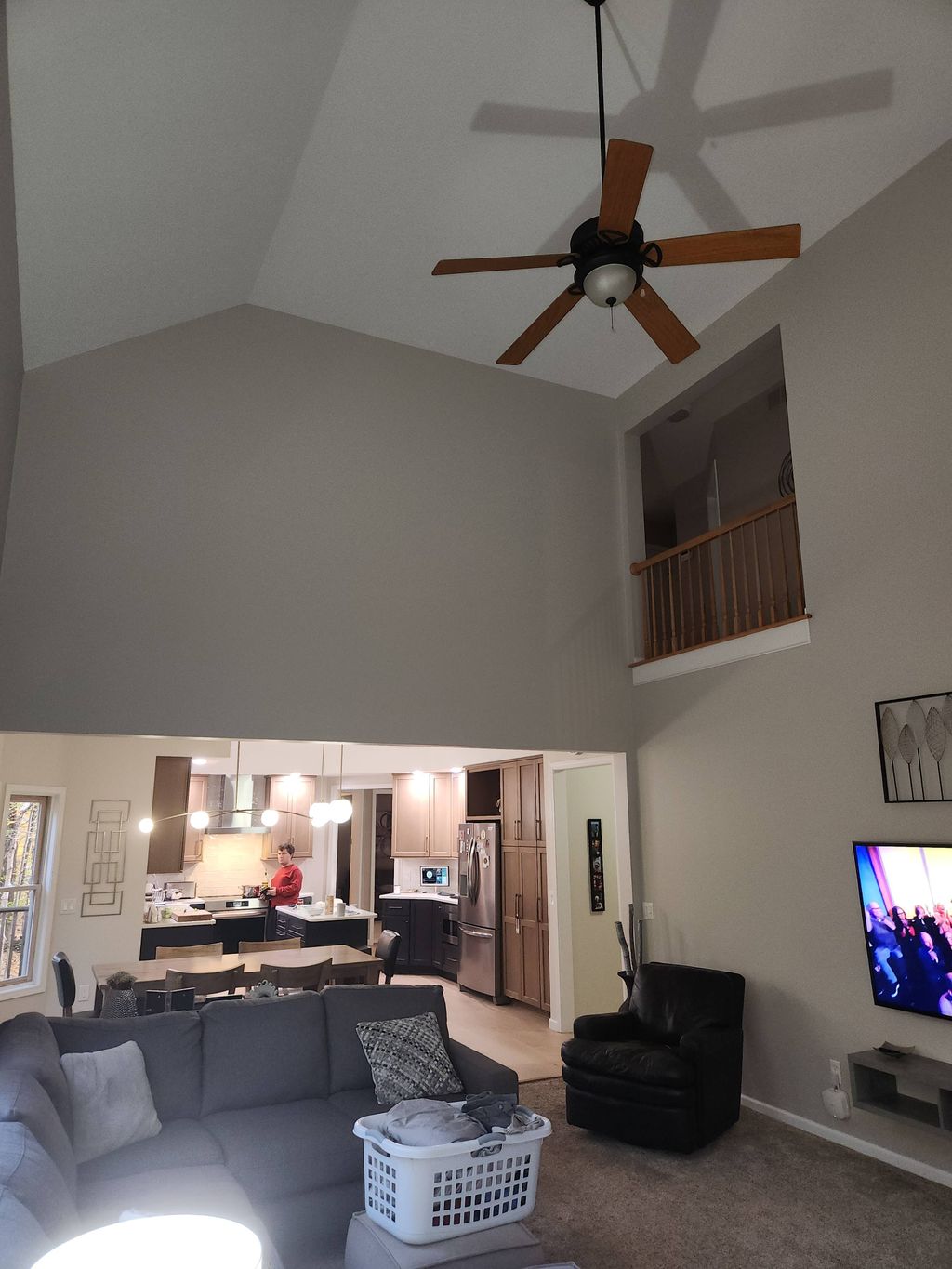 Details: Home • 1 room • Walls • Trim • Ceiling • Over 14 feet (lofty ceiling) • Repainting, with a color change • Fair - minor holes and scratches • Homeowner or property manager • No, this is not new construction • No, I will move things out of the way myself