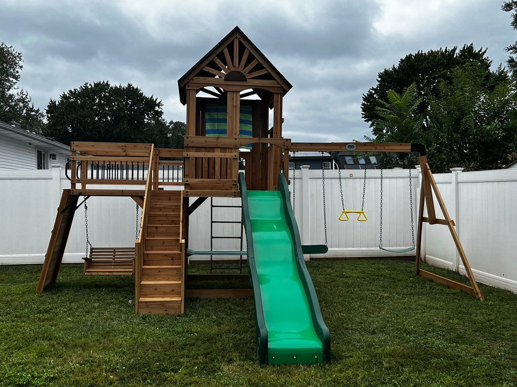 Details: Assemble and install play equipment • Slide • Swings/gliders • Playhouse/Playset • Ladders • Home