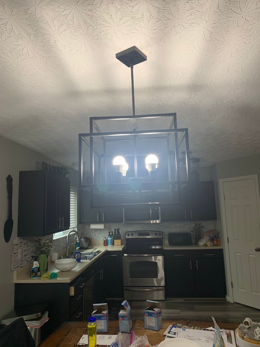 Details: Replacement of existing lighting • 2-4 lights • 8 - 10 feet (standard ceiling) • Indoors • Existing property • House