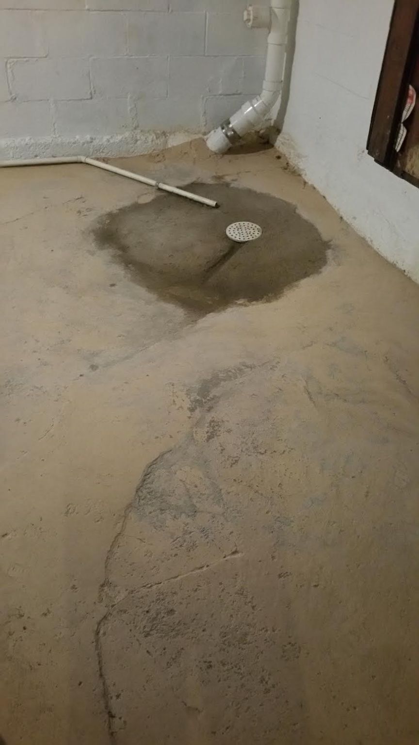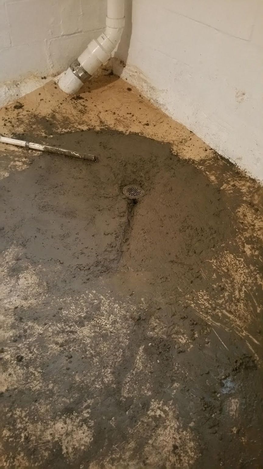 A. Replaced sewer/groundwater main drain in basement floor. Black pipe cut jagged. Did not cut black pipe level. Did not clean up. Left a mess. (See View 1) I cleaned up and smoothed cement as best as I could (See View 2)