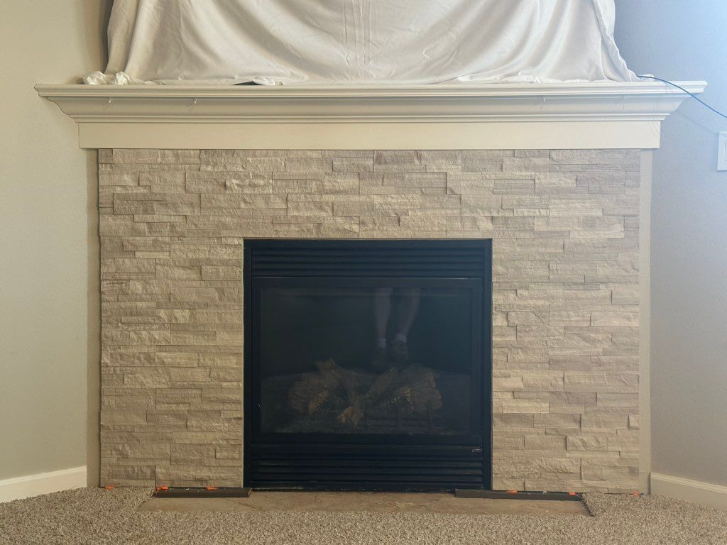 Details: Living room • Wall • Less than 25 sq ft • Drywall • Natural Stone • Yes, I already have the tiles