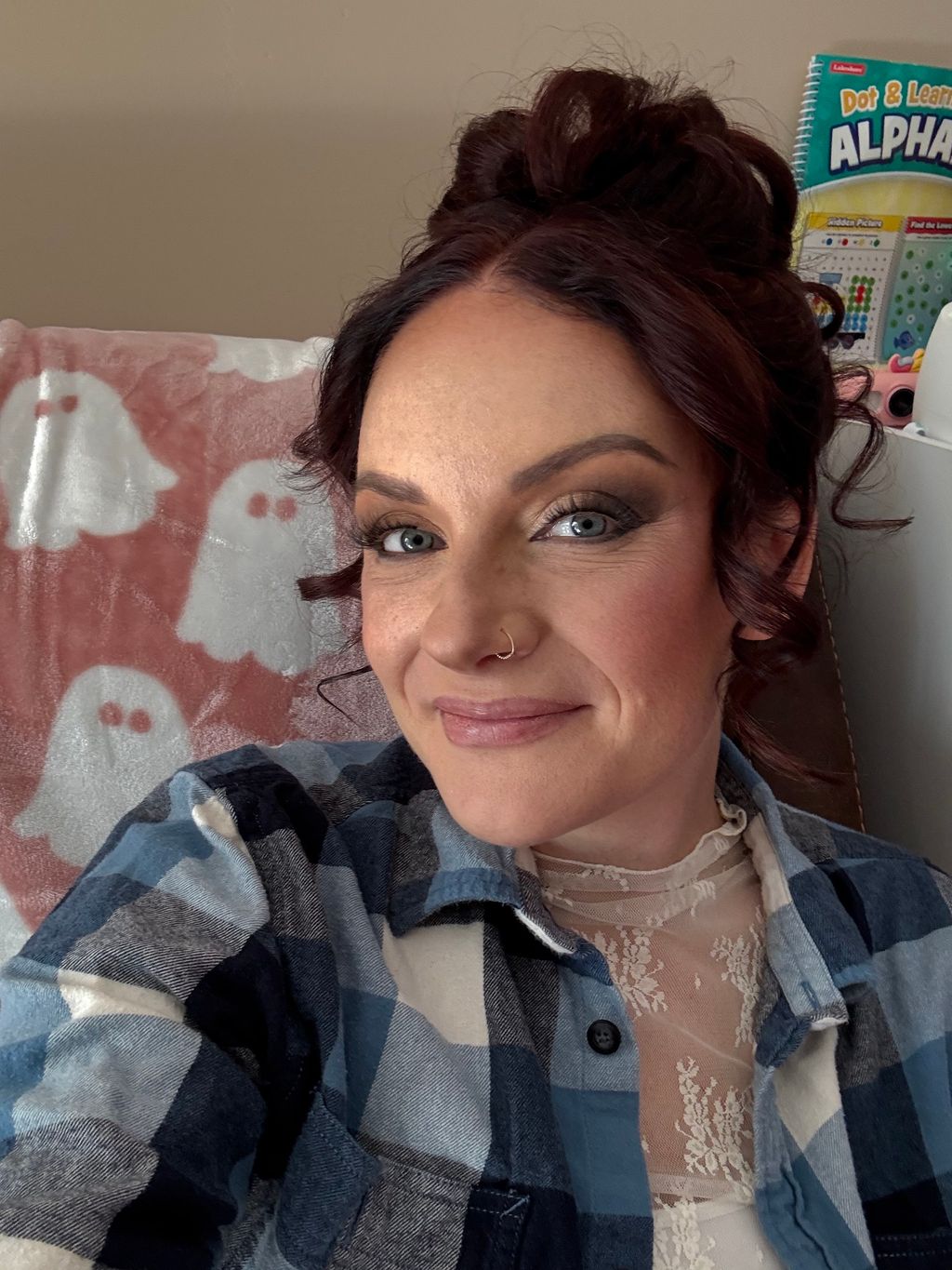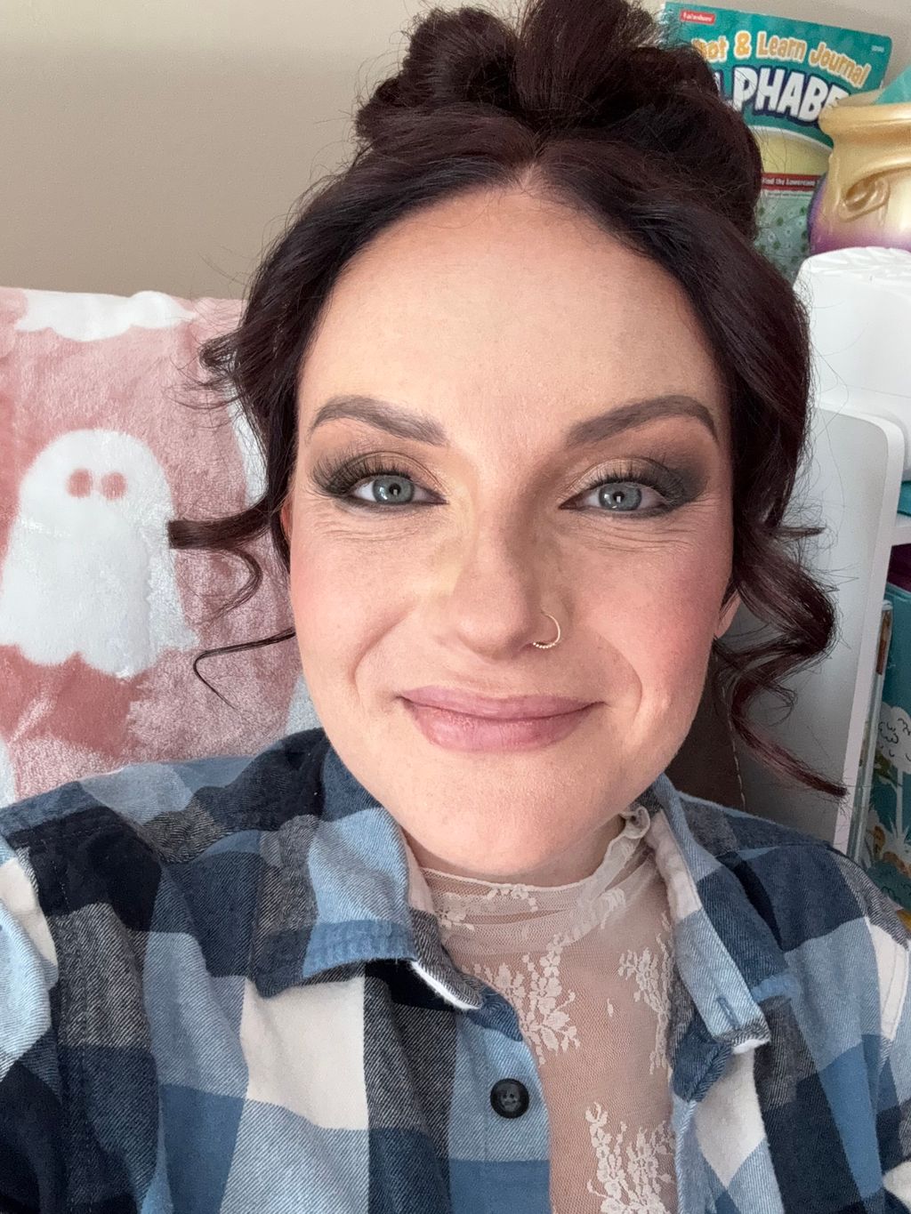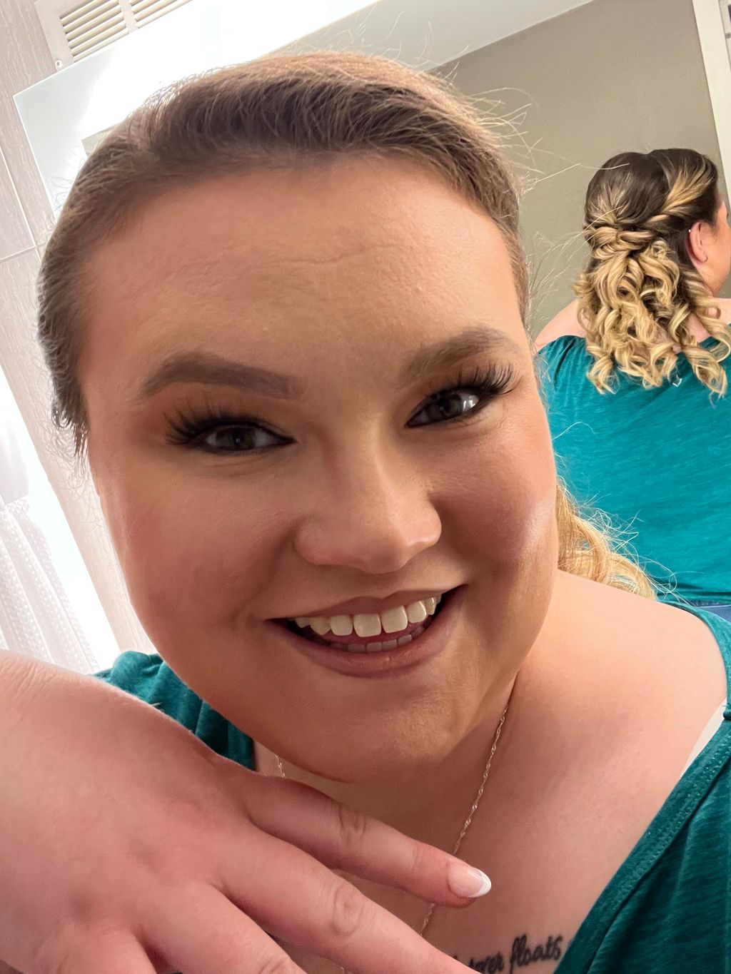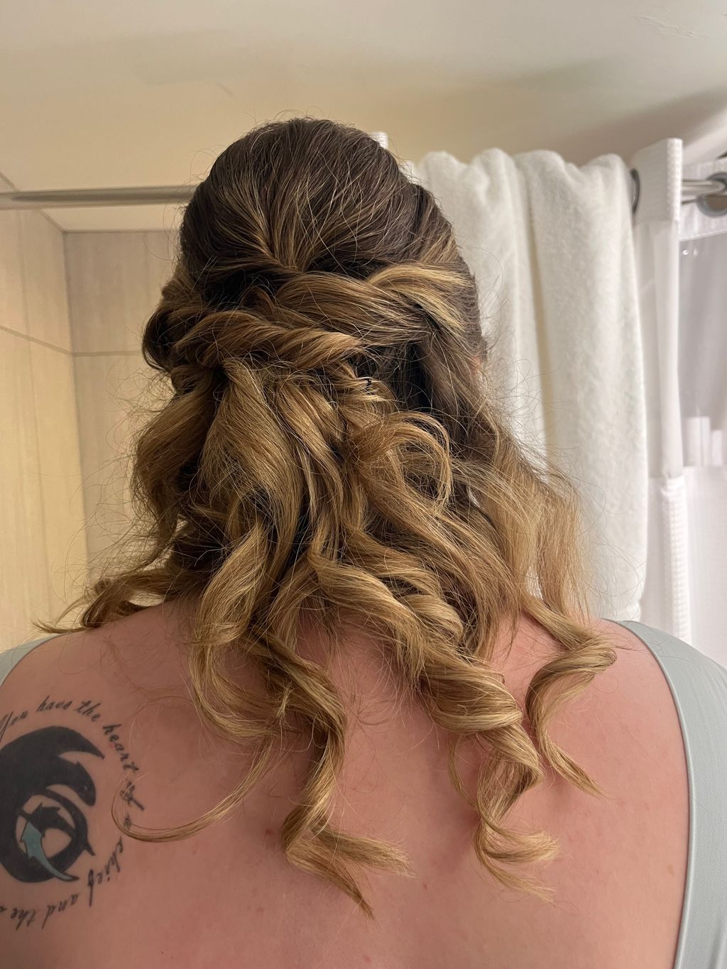 I ask if she has any special makeup or hairstyle idea and I advise her on it.