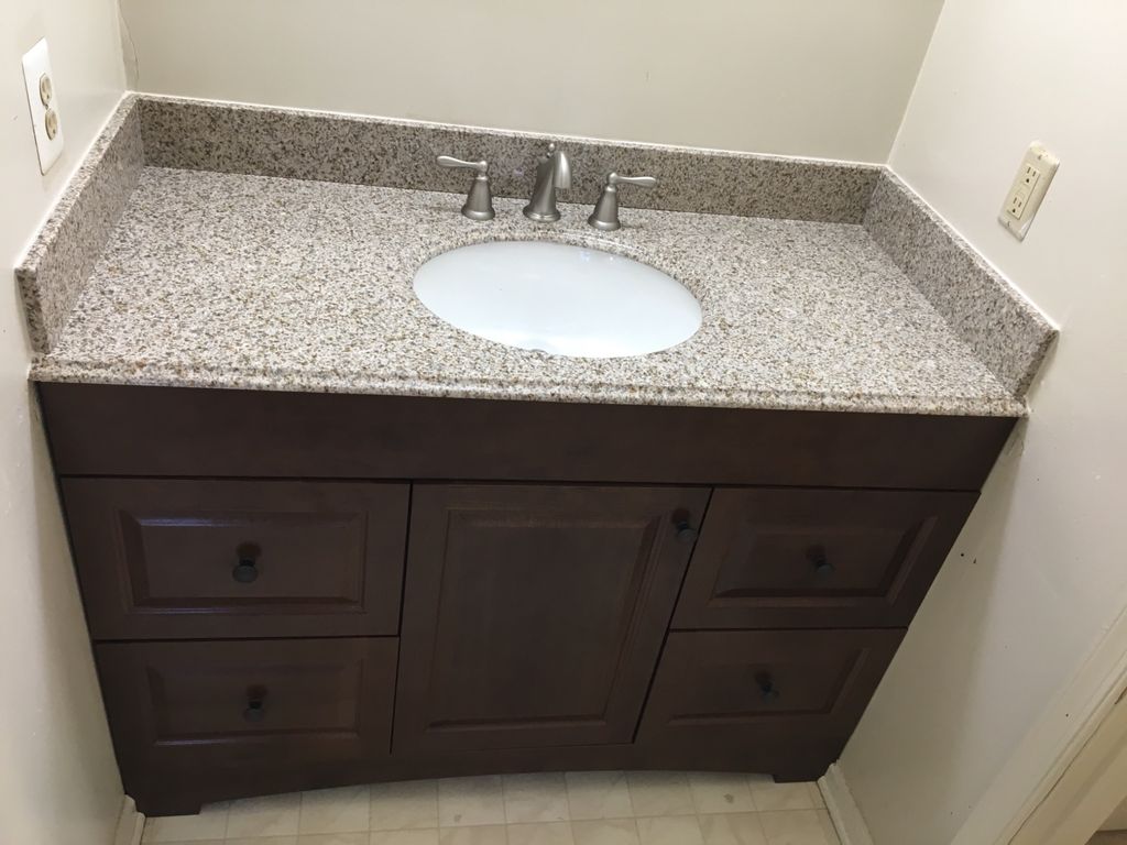 Details: Renovation of entire room • Fix water damage • Update the bathroom's look • Replace bathroom furniture and fixtures • Family (full bathroom shared by everyone) • House • 10 - 50 years old • 25 - 50 sq ft • Lights • Toilet • Sink • Vanity / medicine cabinet • No plumbing fixtures will be relocated • Already have plans - just need installation • No, the project is not covered by an insurance claim