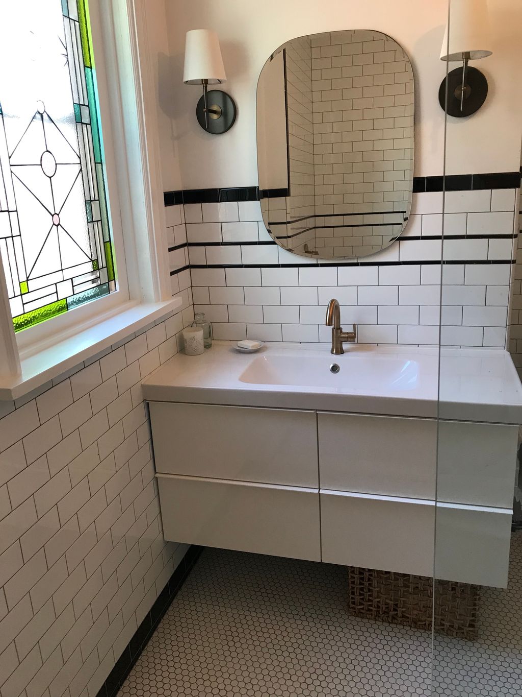 Details: Renovation of entire room • Update the bathroom's look • Family (full bathroom shared by everyone) • House • 101 years or older • 25 - 50 sq ft • Tiling • Lights • Bathtub / shower • Toilet • Sink • Counter • Vanity / medicine cabinet • Sink faucet / tub faucet / showerhead • Bathtub / shower • Sink • No existing plans, but have a good idea of what I want • No, the project is not covered by an insurance claim