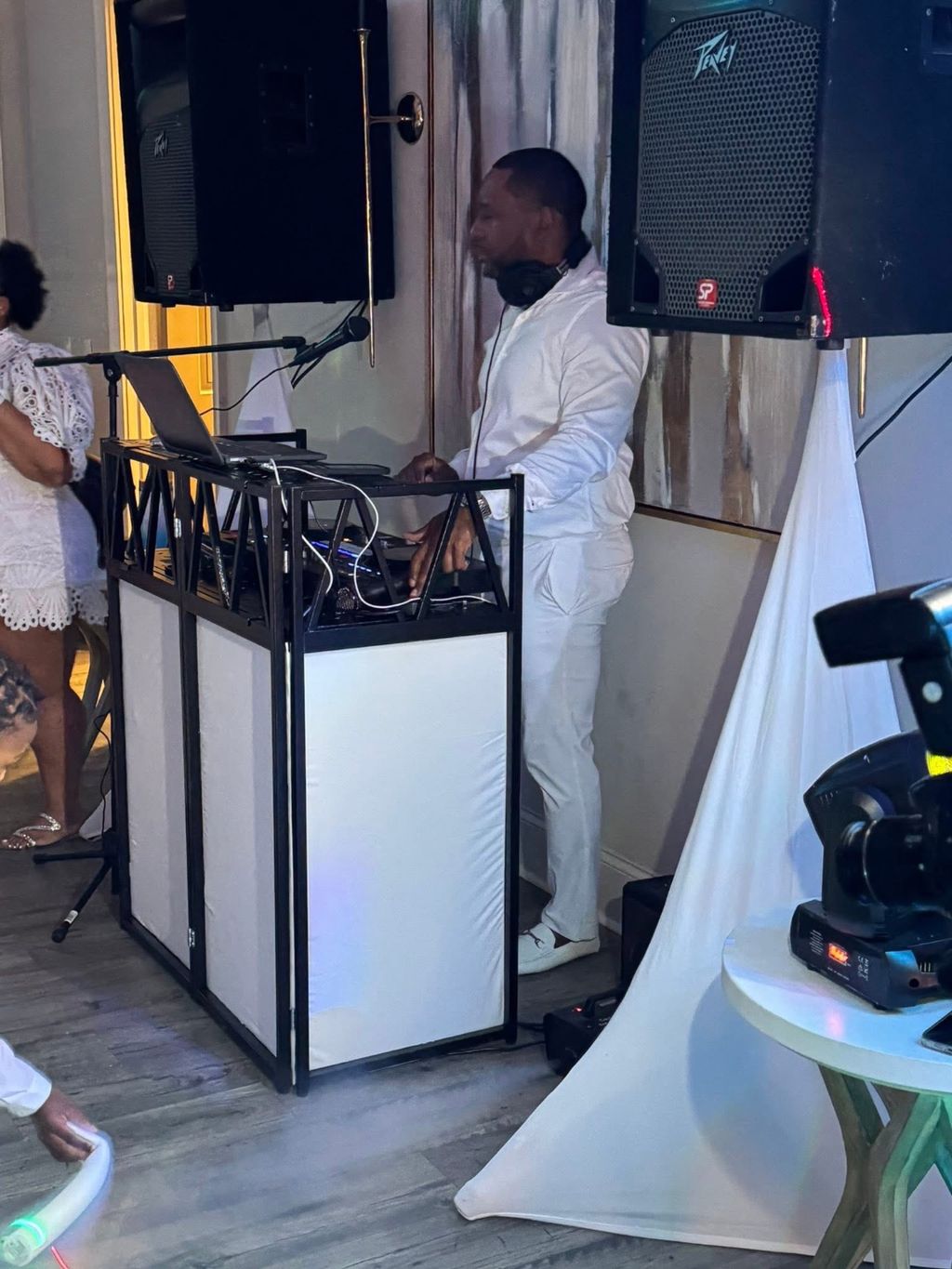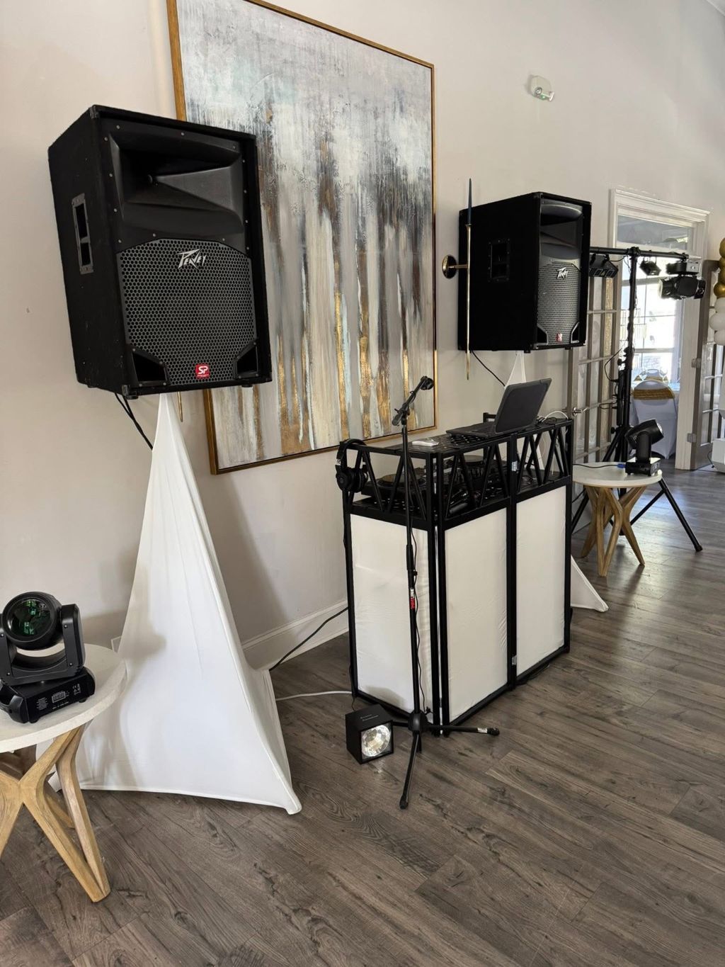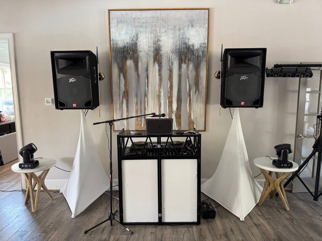 I have a professional sound system to accommodate any event, stage lighting, smoke machines, wireless mics and sound effects.