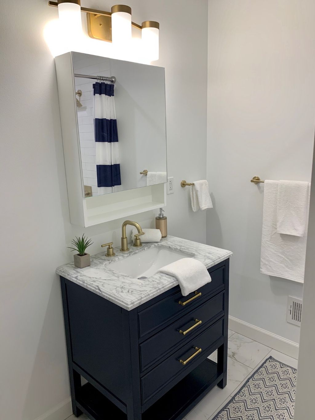 Install bathroom cabinets or fixtures