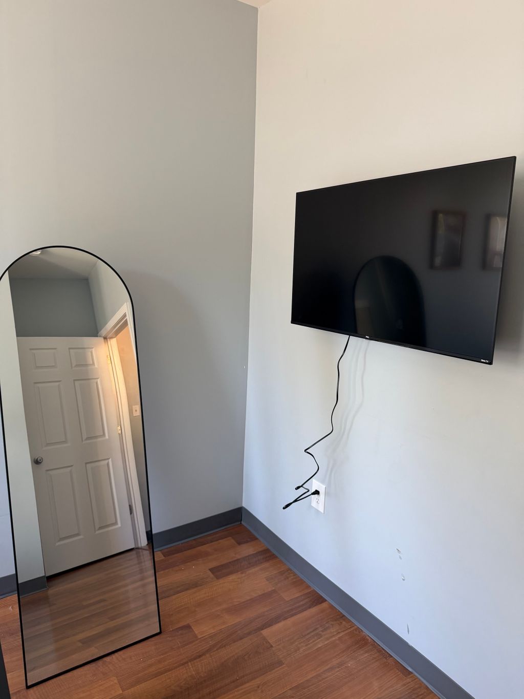 Details: Wall mount • Drywall • TV smaller or equal to 60 inches • No, there’s no electrical outlet nearby • No, I don’t need to conceal cables and wires • Yes, I already have a mount or stand • Flat against wall (fixed) • None