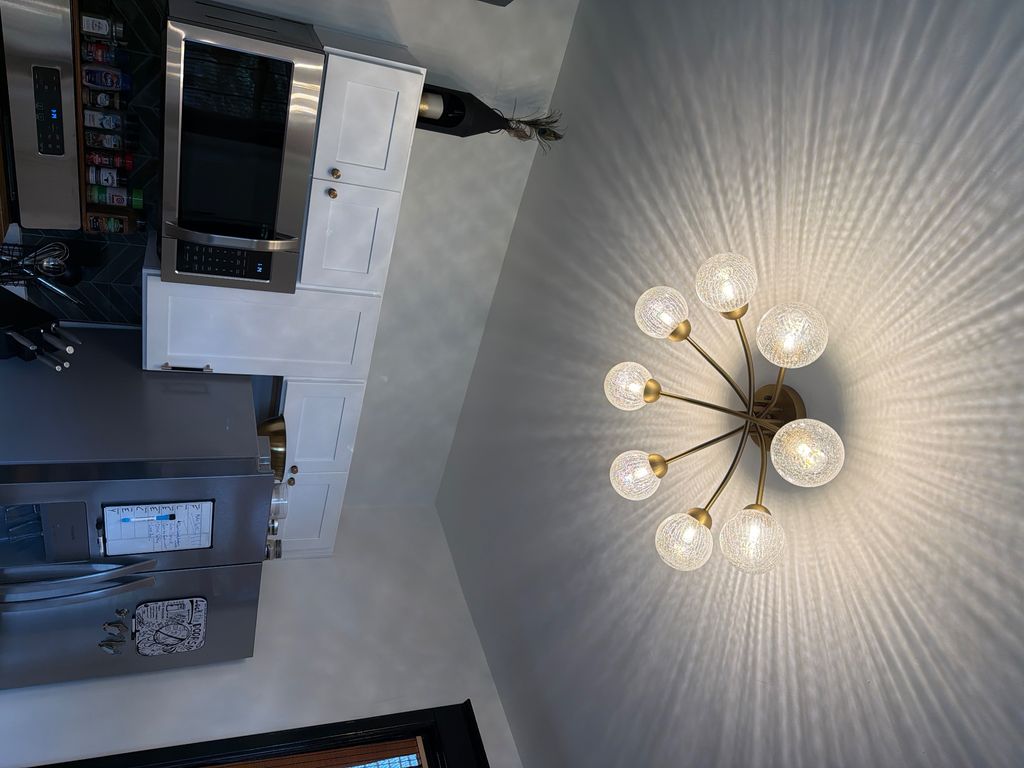 Details: Replacement of existing lighting • 1 light • 8 - 10 feet (standard ceiling) • Indoors • Existing property • House