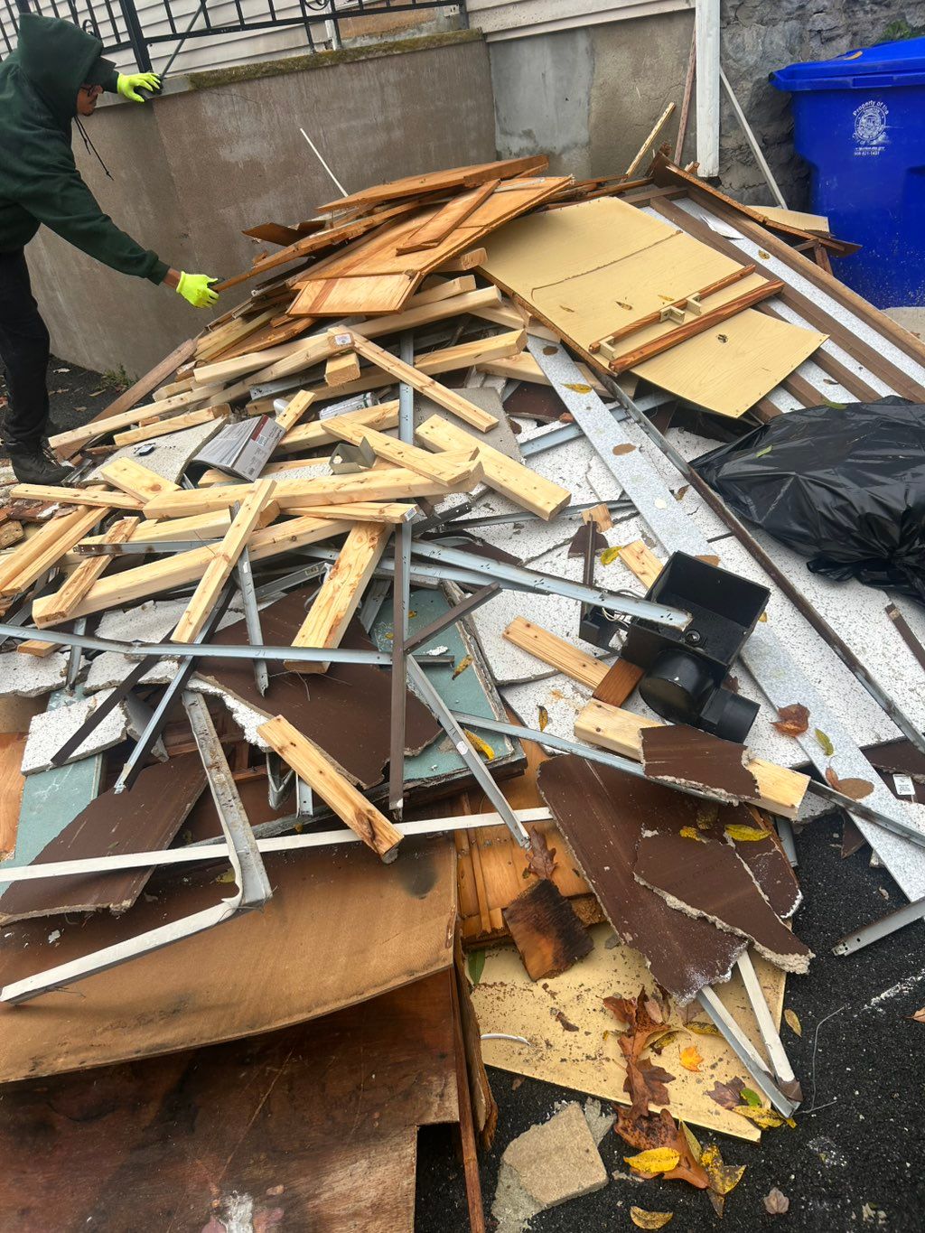 Details: Large items to haul • Mixed trash • Enough to fill half of a pickup truck • There are no flights of stairs