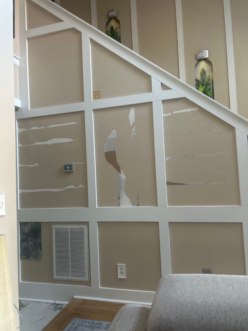 Details: Home • 1 room • Walls • Trim • Over 14 feet (lofty ceiling) • Repainting, with a color change • Fair - minor holes and scratches • Homeowner or property manager • No, this is not new construction • I'm flexible