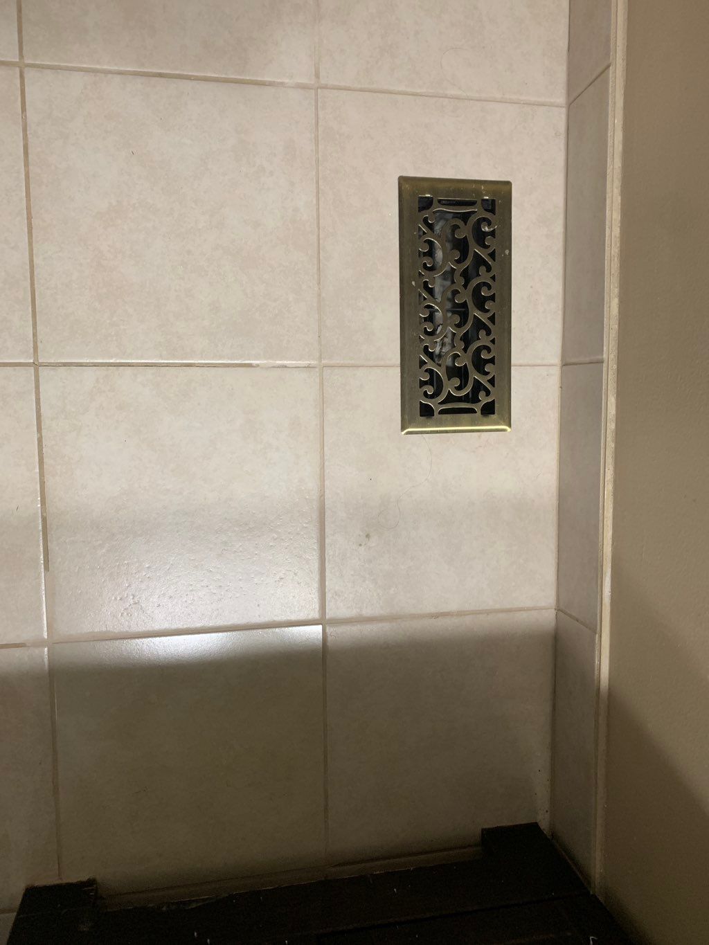 Details: Bathroom • Floor • Crumbling, stained, or missing grout • Cracked tile(s) • Ceramic