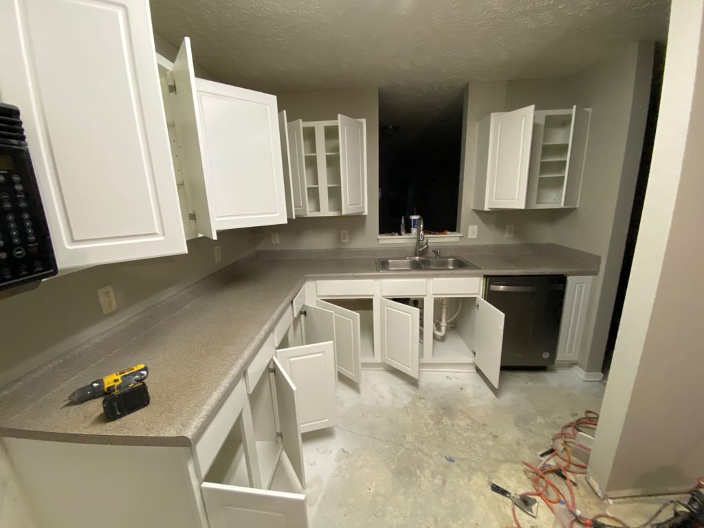 Details: Refinish worn or damaged areas • 1 - 5 cabinets • Laminate • Kitchen • Residential