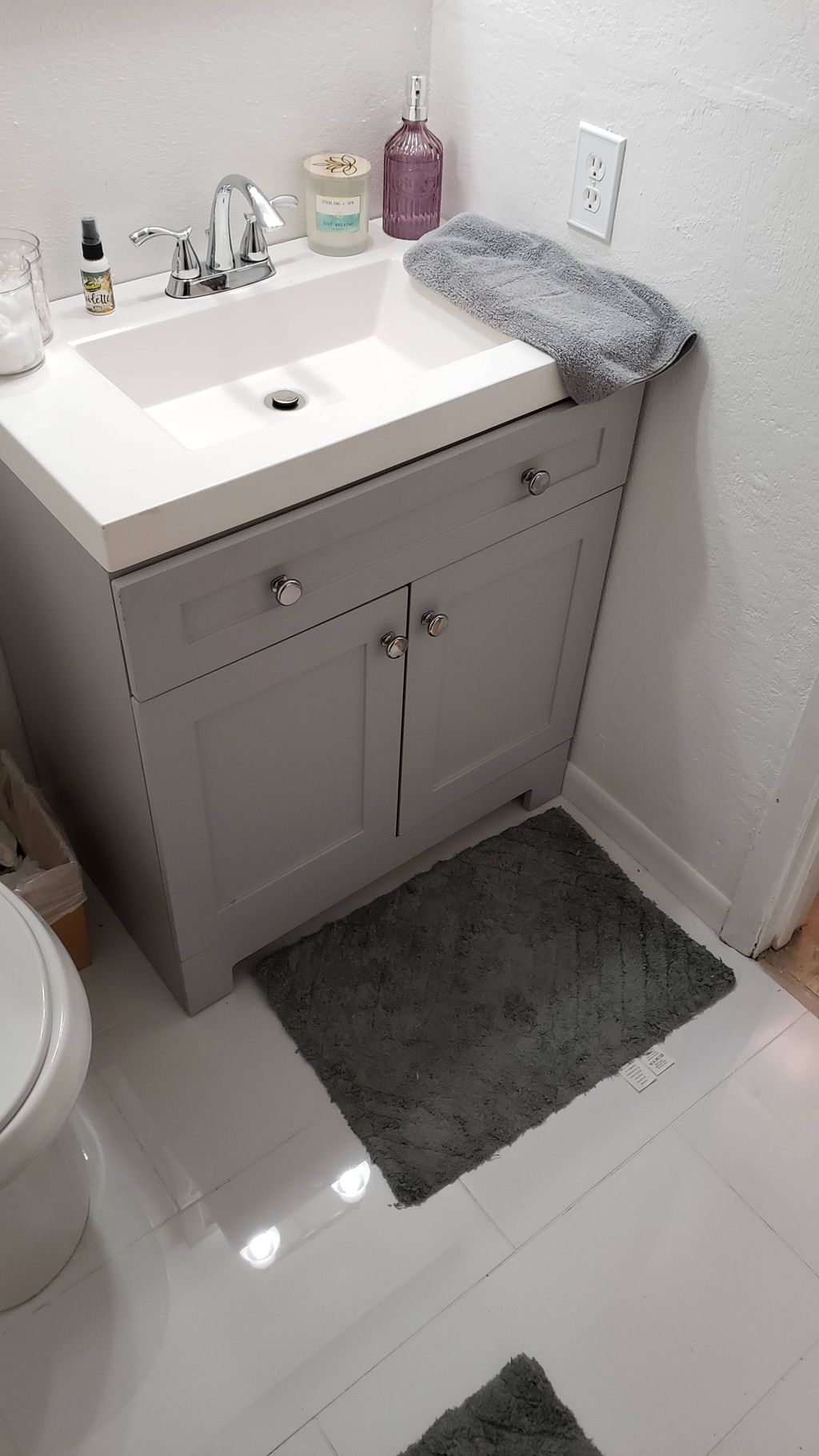 Install bathroom cabinets or fixtures