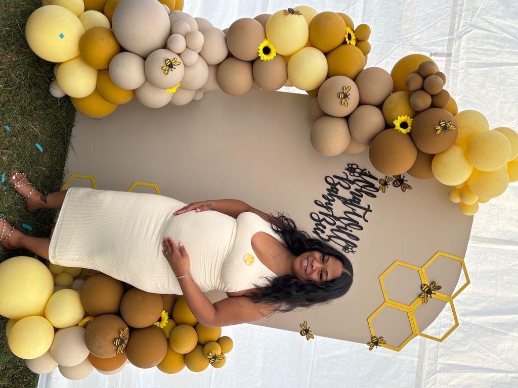 The balloon setup was absolutely stunning and tied the whole “What Will Baby Bee?” theme together perfectly! The mix of yellow, gold, and brown tones looked so warm and elegant, and the little bee accents added the sweetest touch. The arrangement was full and well-balanced on both sides of the backdrop, creating a perfect photo spot. Everything stayed in place throughout the event, and the quality of the balloons was excellent no deflating or popping. It truly made the celebration feel extra special and picture perfect!