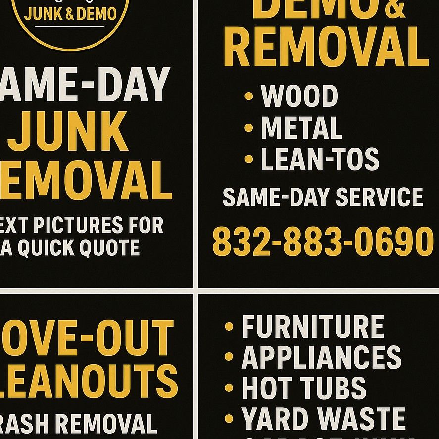 I provide fast, affordable, and reliable junk removal & demolition with nothing but 5-star reviews across every platform. I show up on time, work hard, and treat every customer’s property with respect. I’m a trusted pillar in the community, and my goal is to make your cleanout or demo stress-free, same-day, and done right the first time.