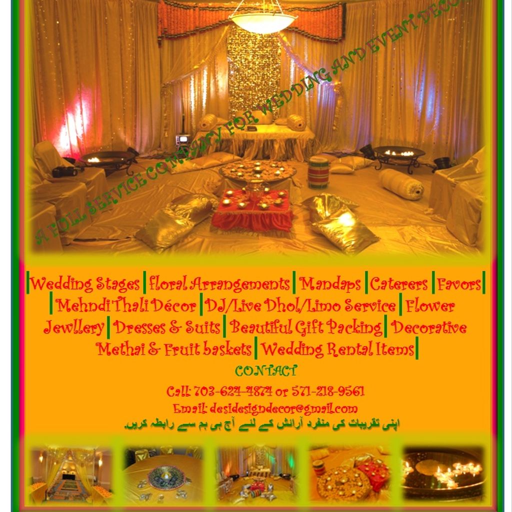 Desi Design & Decor (DDD) provides you a one-stop solution for all your party requirements in Washington, D.C.; Northern Virginia and Maryland.
