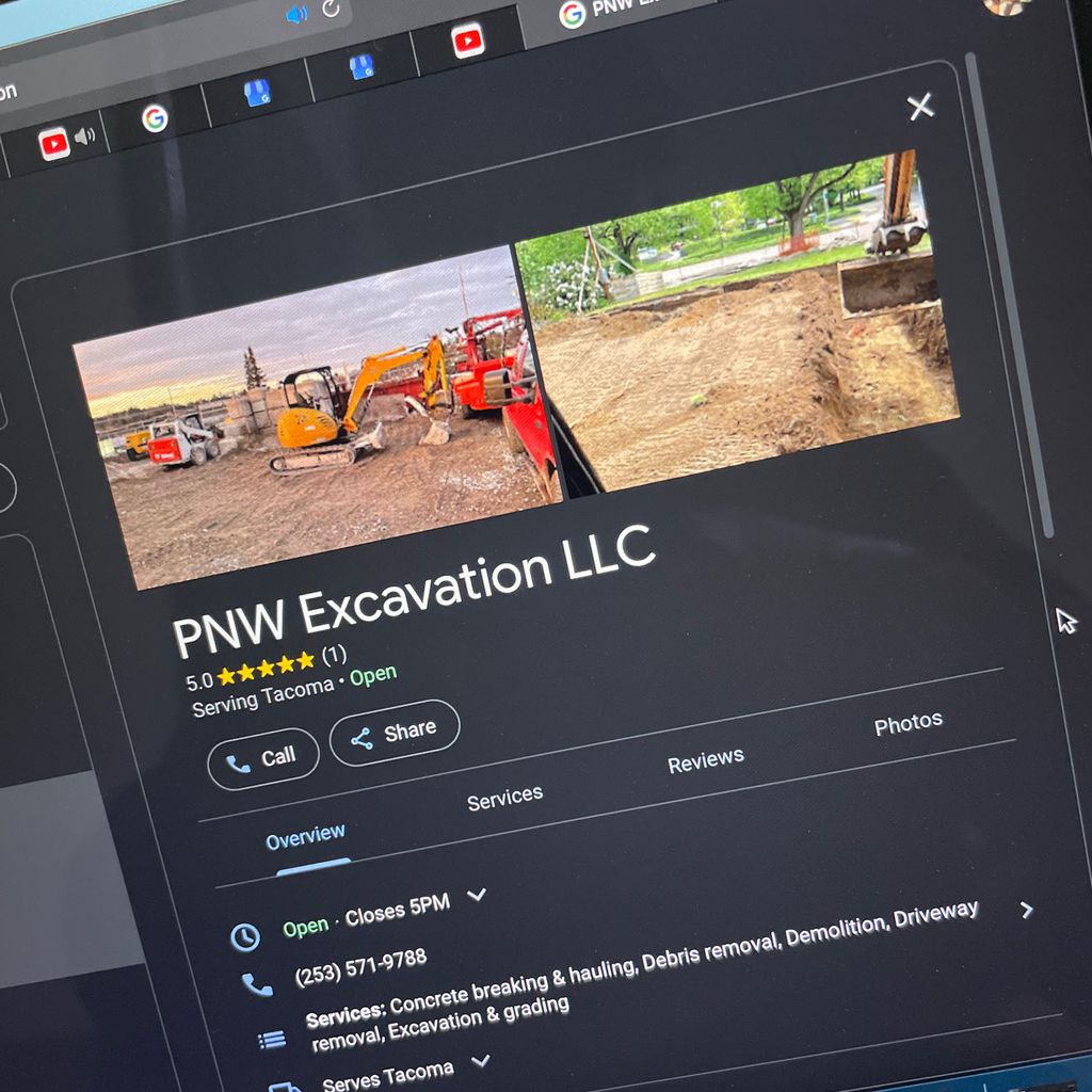 Im a new Excavation Company based out of Tacoma WA. About 1 year in business, I offer all kinds of excavation services to my city and surrounding city’s. I go above and beyond to satisfy my customers.