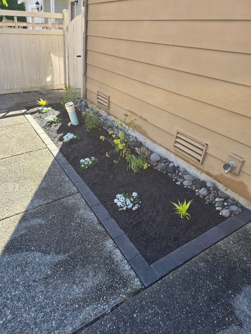 Details: Small changes like planting flowers or trimming shrubs • Apply mulch • Patio • Driveway • Walkway • Entire property • No, one-time project • Home